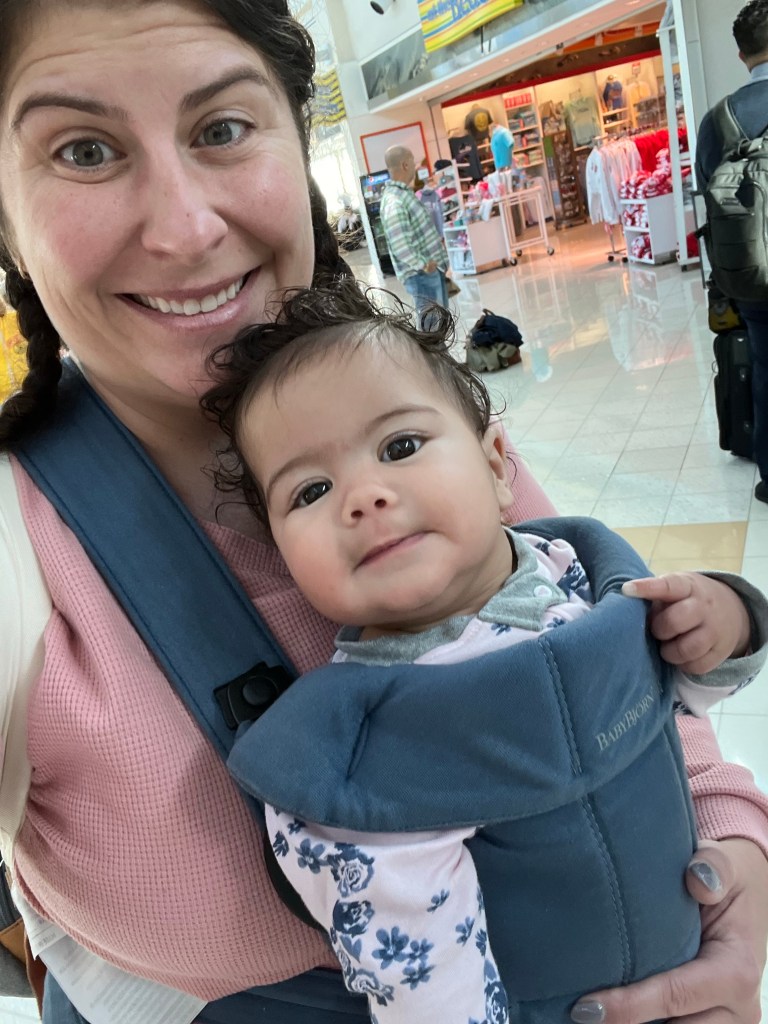 3. Getting through security: TSA pre check is a game changer. It is worth the fee. You get to keep your shoes on and you can wear baby. If traveling with pumped breastmilk or formula, prepare a few bottles ahead of time be prepared for extra time at TSA to test bottles.
